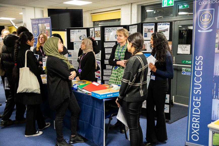 On Monday 27th of November, Kingsbury Sixth Form hosted their annual Open Evening from 5:30-7:30pm. We provided parents and carers, Year 11 students from Kingsbury High School and students visiting from neighbouring schools with the opportunity to learn more about our broad range of A Levels and BTECs. Extracurricular opportunities were shared with students, such as the Duke of Edinburgh Gold, Higher Sports Leader Award (HSLA), Extended Project Qualification (EPQ) and Young Enterprise. A large number of our Sixth Form students - former and current - also supported the event, including Subject Ambassadors and our Senior Prefect team and Head Boy and Girl. Our enthusiastic and experienced subject teachers showcased their courses; we encourage all students to consider the wide range of pathways available to them.