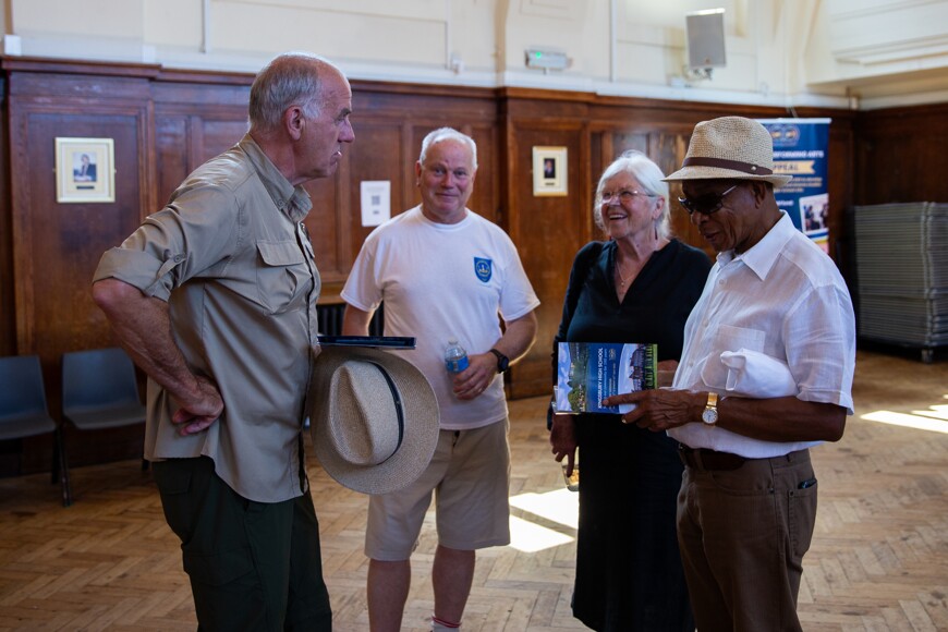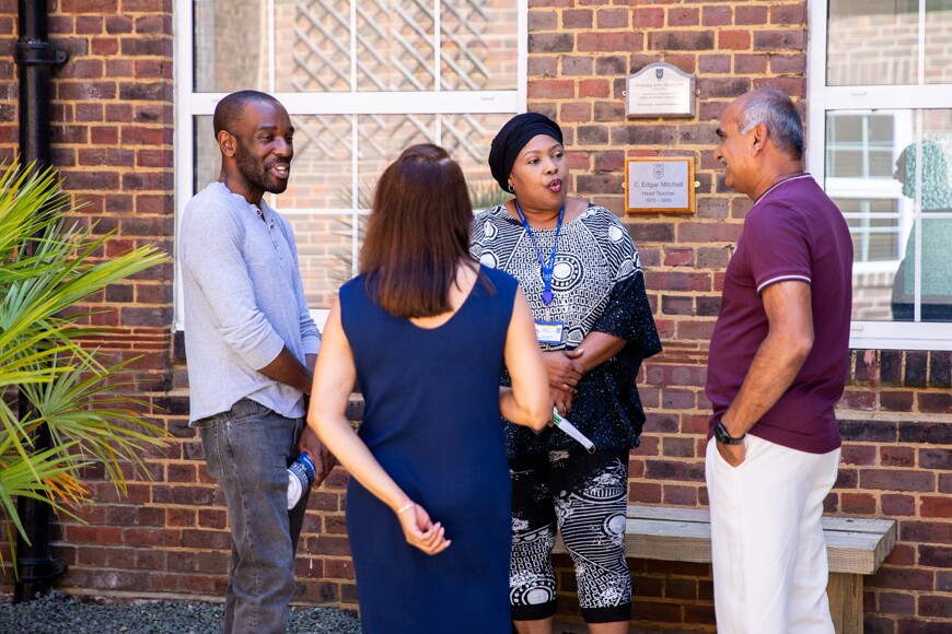 We had two weekends of celebrations, beyond the assemblies that every student received on our history. The first weekend we were lucky enough to have a dinner dance for alumni with an excellent band of former students, The Old Kings. The main event was a weekend in July where students old and new were able to come and either reminisce about their time in school or wonder at our long history. Several hundred people attended and were able to review our extensive archive, perhaps to find pictures of themselves, entertained via music from KAOS, the (old) school choir and jazz from Dave Green, all supplemented by our own current students who played fantastic sets both Saturday and Sunday. There was even an Old Kingsburian cricket match.